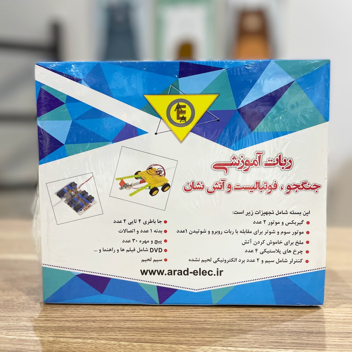 | محتویات بسته | 30 عدد پیچ و مهره, 4 عدد چرخ پلاستیکی, DVD راهنما, دو عدد جا باتری 4 تایی, دو عدد گیربکس و موتور, سیم لحیم, کنترلر شامل سیم, ملخ برای خاموش کردن آتش, یک عدد بدنه و اتصالات, یک عدد موتور سوم و شوتر |