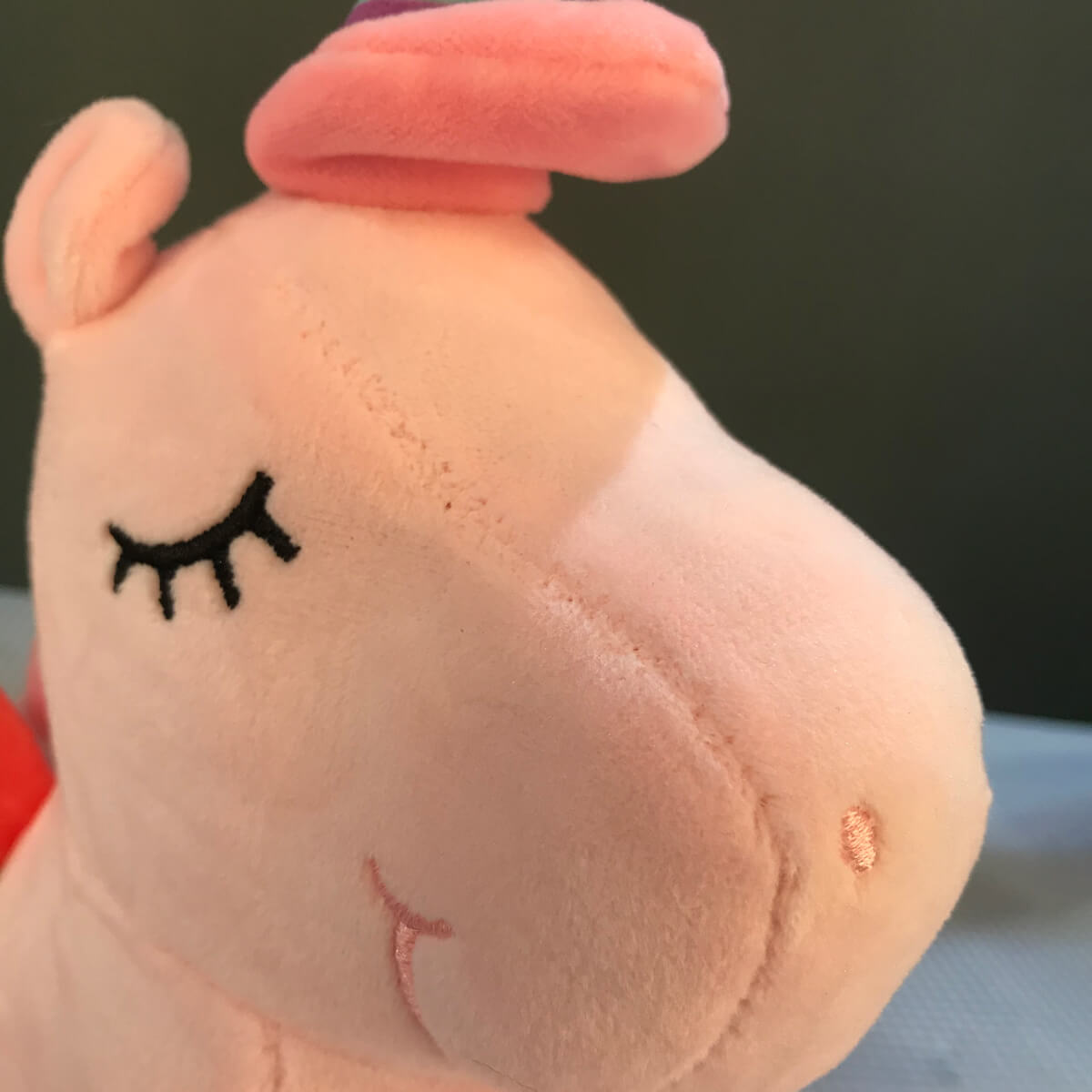 عروسک یونیکورن یکی از پر فروشترین و پر طرفدارترین مدل عروسک در بین دختر بچههاست و این به خاطر داشتن رنگ (صورتی – سفید) چشمهای بسته به شکل خواب ،بالها و شاخ سه رنگ (زرد- سبز- سرخآبی) ،داشتن یال و دم صورتی هم رنگ بدن و …. میتوان اشاره کرد. از نظر جنس پارچه و دوخت این مدل دارای پارچه استرج کش ضدحساسیت و با قابلیت شست و شو با ماشین لباسشویی با دمای ۳۰ درجه سانتی گراد را دارد و الیاف به کار رفته در آن از بهترین نوع است . دوخت این مدل به صورت ریز دوز و چشم و دهن به صورت گلدوزی شده میباشد.