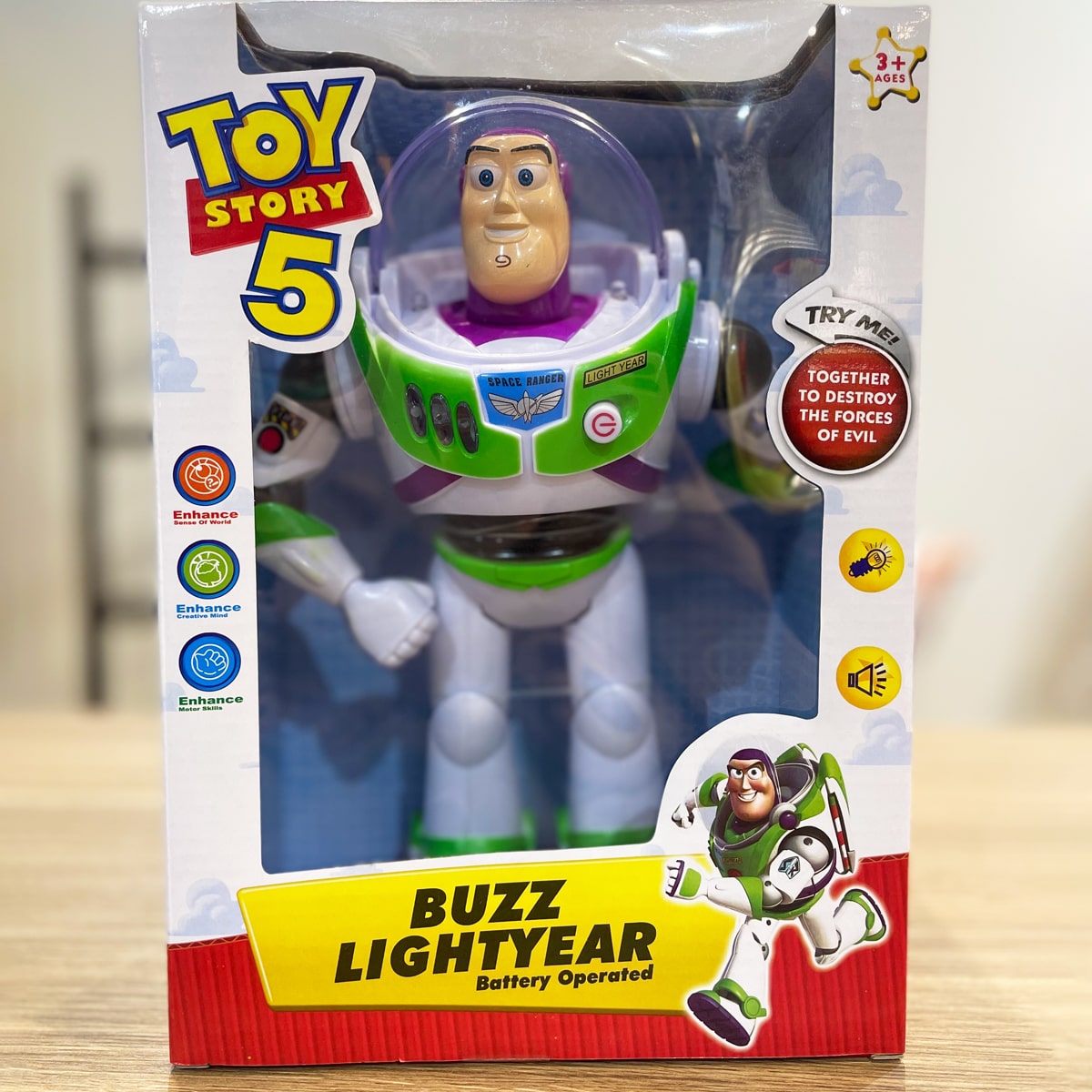 اگر در اطراف شما یکی از طرفداران کوچک انیمیشن Toy Story وجود دارد، فرصت خوشحال کردن او با این اسباببازی بازلایتر سری ۵ را از دست ندهید. این اسباببازی عملکردهای مختلفی دارد تا بتواند تجربه بازی کردن با خود را برای کودکان بسیار لذتبخش و هیجانانگیز کند. اسباببازی بازلایتر سری ۵ باتری میخورد و پس از آن قابلیت پخش صدا و نور خودش را برای شما به نمایش خواهد گذاشت. کلاه فضایی روی سر این اسباببازی باز و بسته میشود و علاوه بر آن، پشت بدنش دکمهای وجود دارد که اگر شما آن را فشار دهید بالهای بازلایتر باز خواهند شد! در نظر داشته باشید که دستها و پاهای این اسباببازی به گونهای طراحی شدهاند که ثابت نیستند و قابلیت حرکت و تکان خوردن دارند.