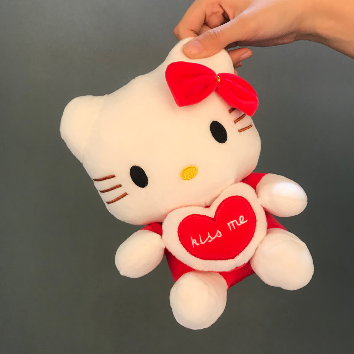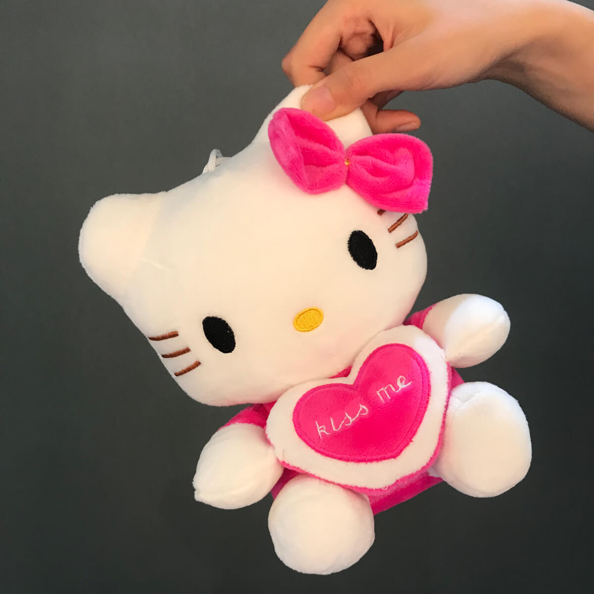 پاپیون زیبا و همرنگ با قلب و بدنهی عروسک نیز بر زیبایی ظاهری آن افزوده. عروسک کیتی دارای ارتفاع ۲۰ سانتیمتر طول ۱۰سانتیمتر و عرض ۱۰ سانتیمتر میباشد که با داشتن وزن حدودی ۱۰۰گرم میتوان آن را در دسته عروسکهای سبک و مناسب برای بازی کودکان قرار داد.